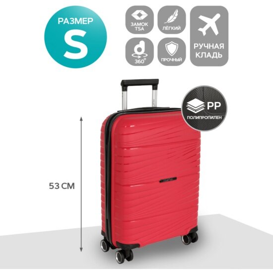 Чемодан малый POLAR РР820, 20", красный 37 л