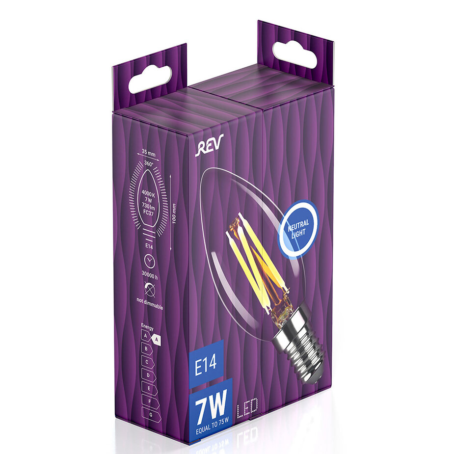 Лампа светодиодная E14 7 Вт 4000К свеча С37 220 В REV