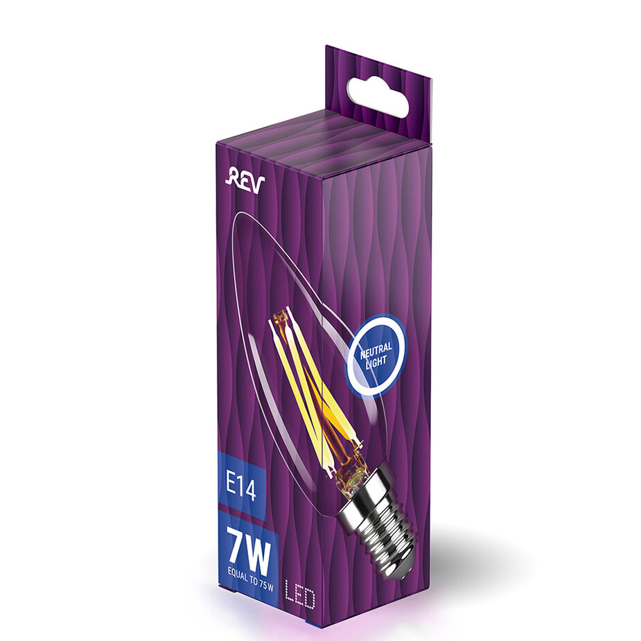 Лампа светодиодная REV 7 Вт E14 филаментная свеча витая TC37 4000К естественный белый свет 220 В