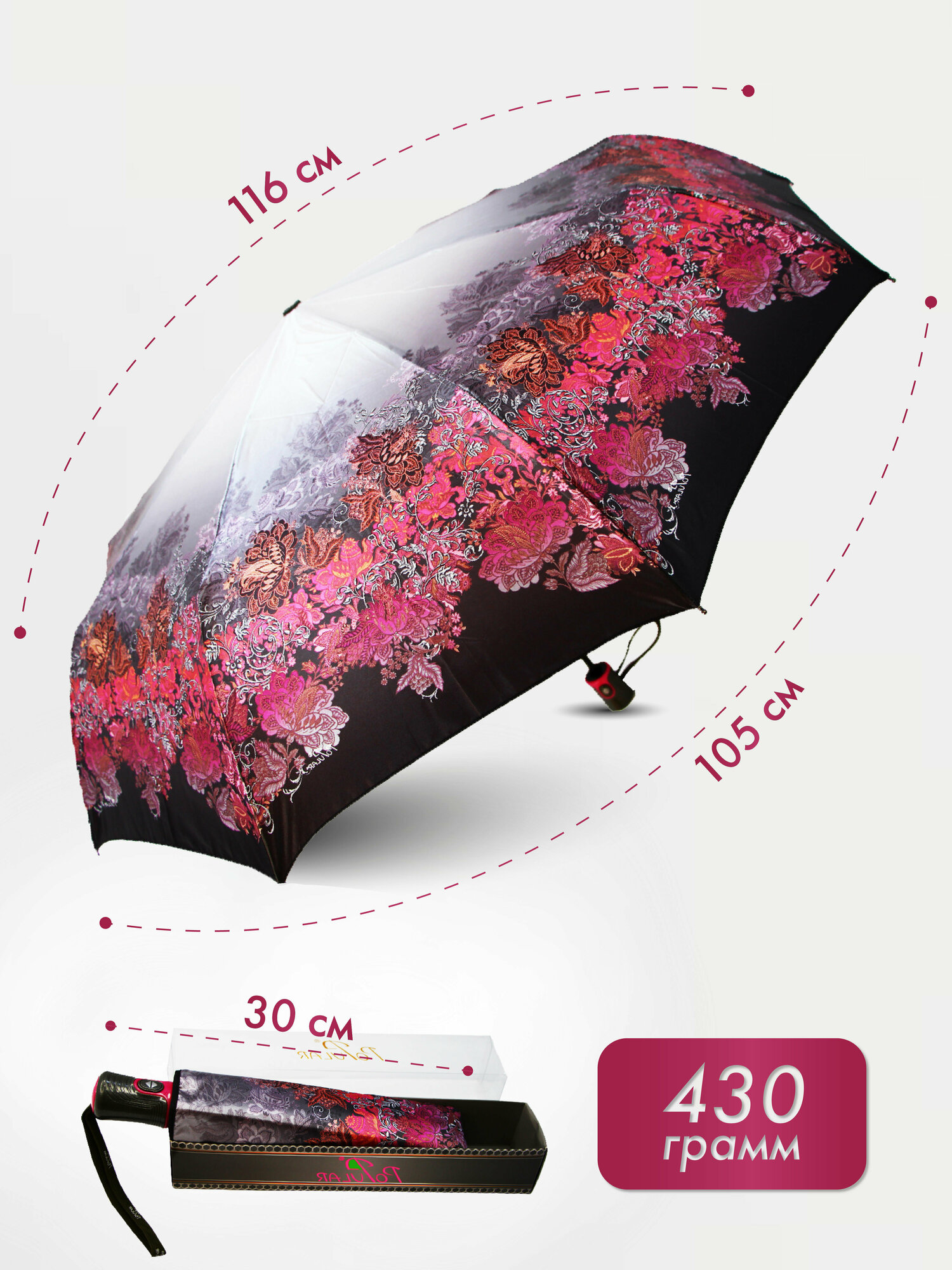 | Дополнительная информация | Комплектация: зонт 1шт, чехол 1шт, подарочная коробка 1шт. |