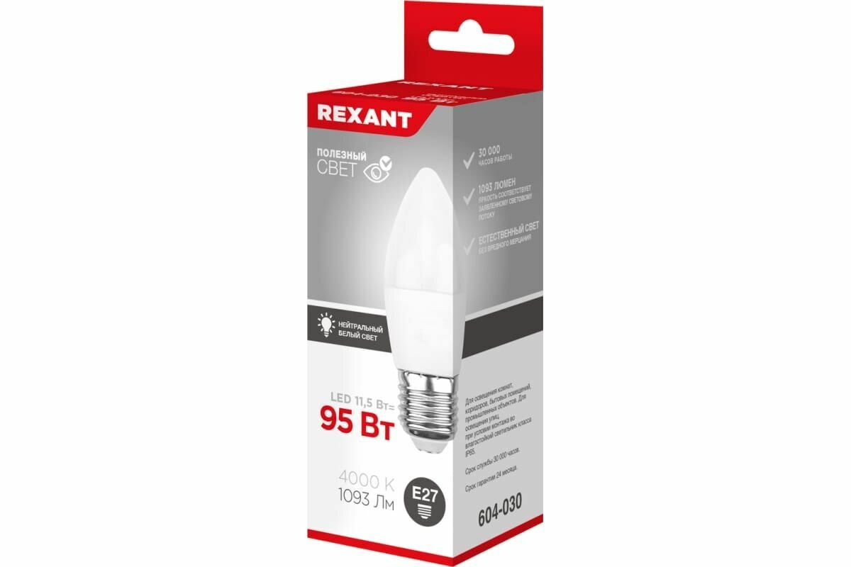 Rexant 604-030 Лампа светодиодная Свеча CN 11,5 Вт E27 1093 лм 4000 K нейтральный свет