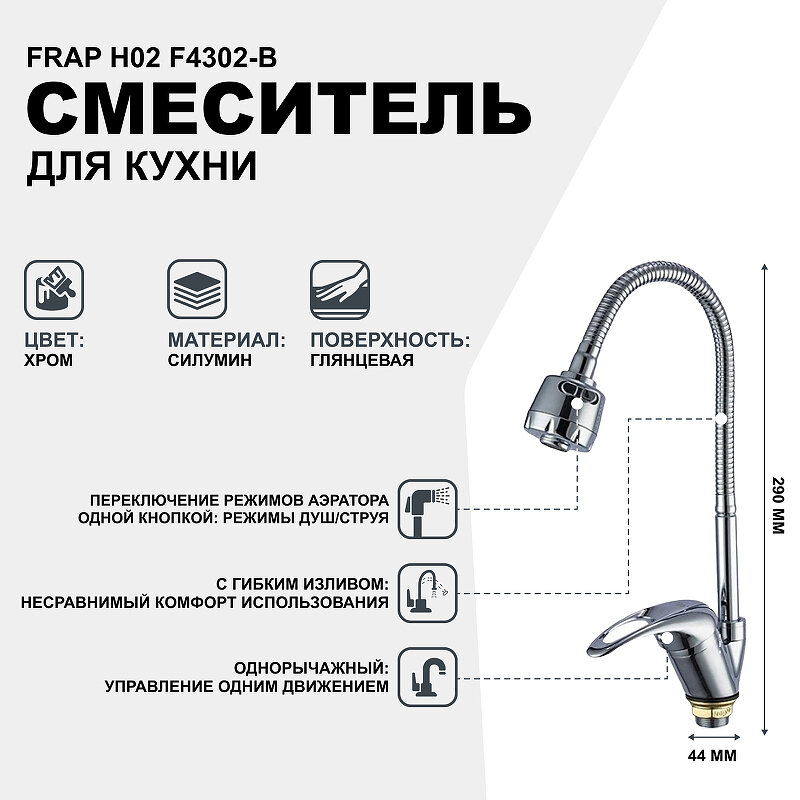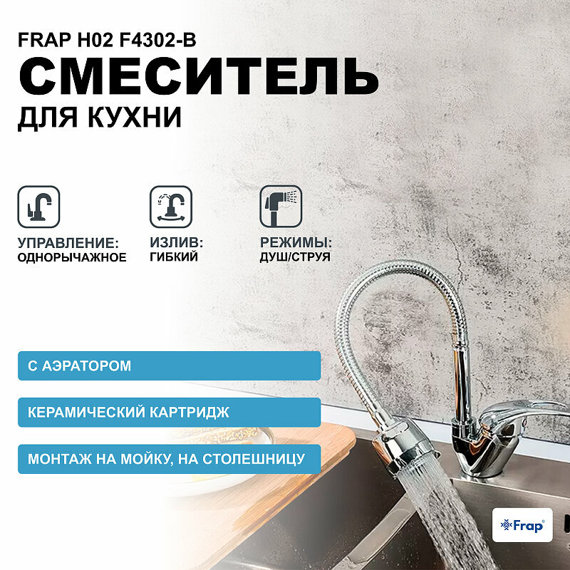 Смеситель для кухни (мойки) Frap H02 F4302-B хром интересное: