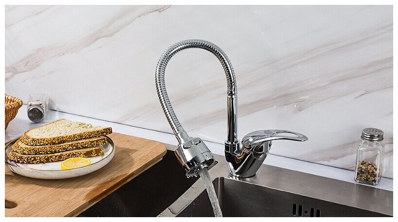 | Плюсы: | Два режима, лейка и кран, гибкий излив с фиксацией в любом положении. |
