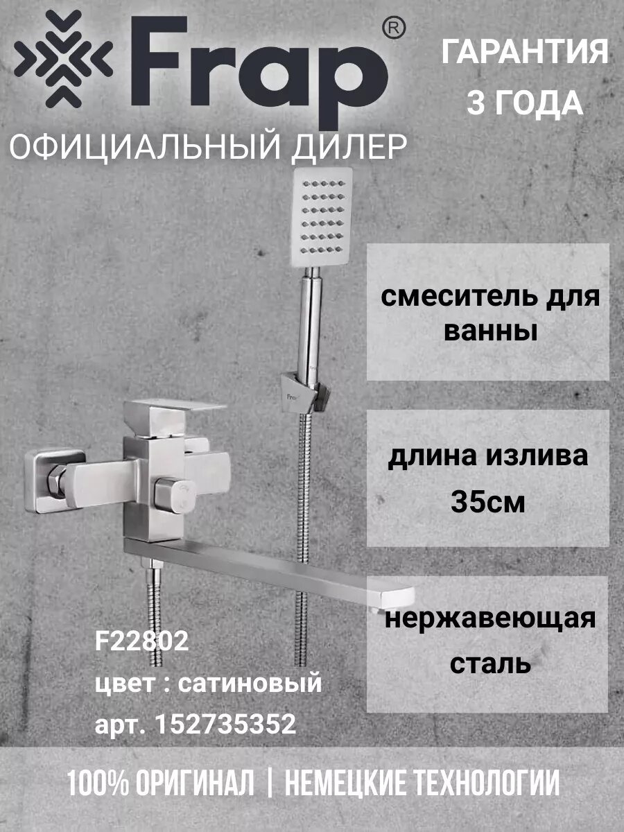 Смеситель FRAP для ванны шар. D40мм переключ. на корпусе излив 350мм F22802 нержавейка интересное: