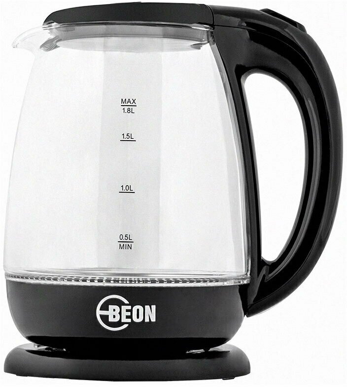 Чайник электрический BEON BN-370, стекло 1,8л, 1800Вт, LED-подсветка, Черный