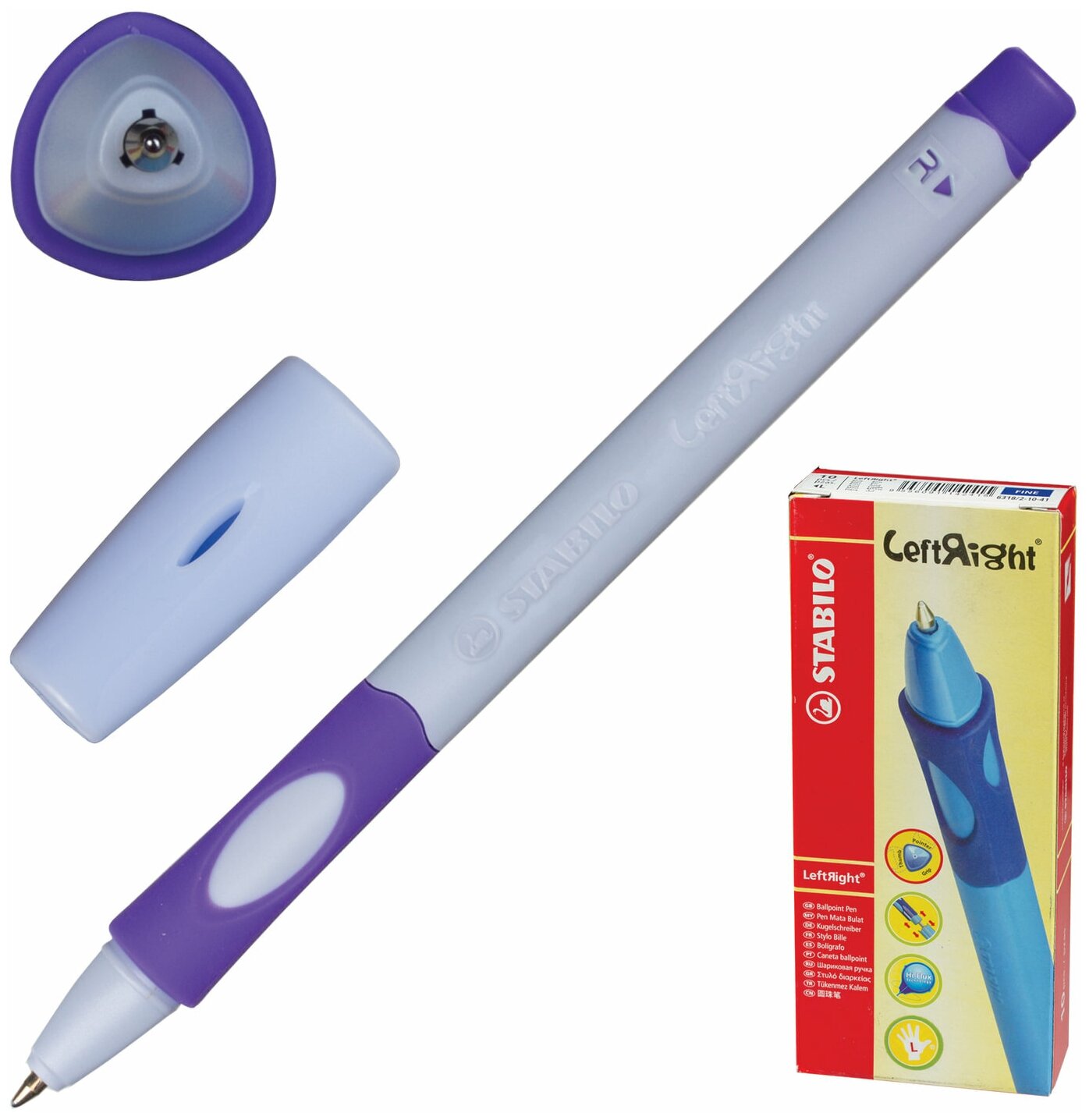 Ручка шариковая STABILO LeftRight для правшей, 0,8 мм, лавандовый корпус, стержень синий 1060332 .