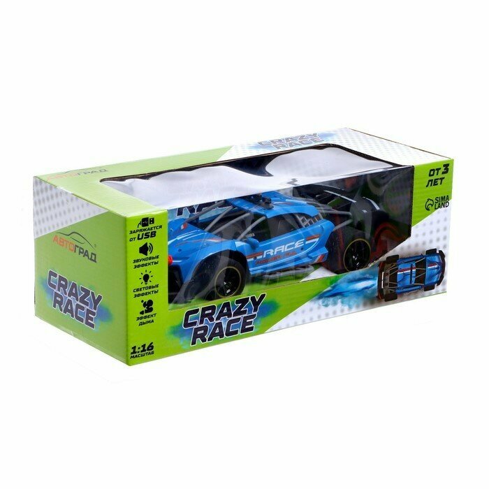 Машина радиоуправляемая Автоград Runner, эффект дыма, 1:16, работает от аккумулятора, синий 6316-3 интересное: