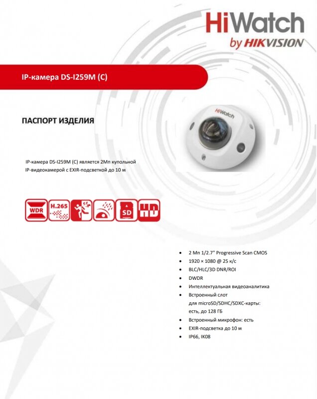 DS-I259M(C) (2.8 mm) HiWatch Купольная IP-видеокамера интересное: