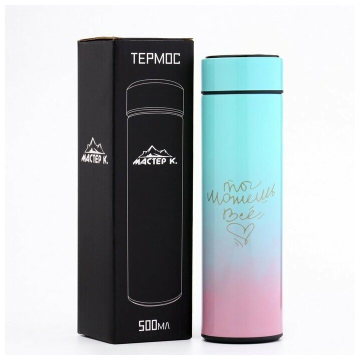 Термос "Мастер К." 450 мл, сохраняет тепло 8 ч, с термометром, розово-голубой интересное: