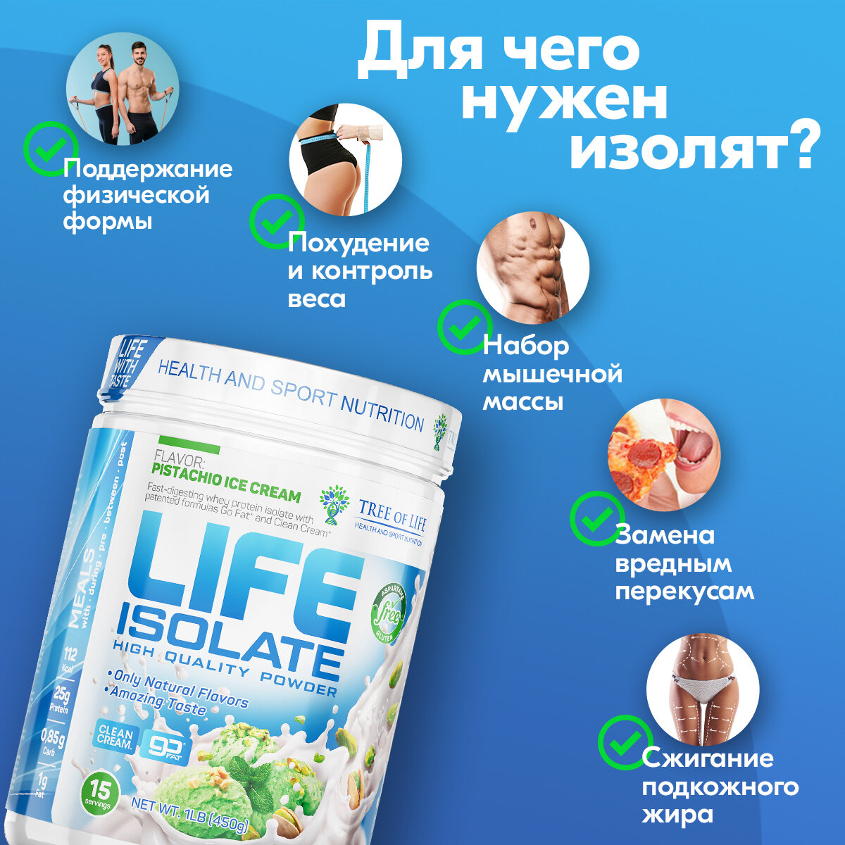 Купить Tree of Life Life Isolate 450 гр (фисташковое мороженое)