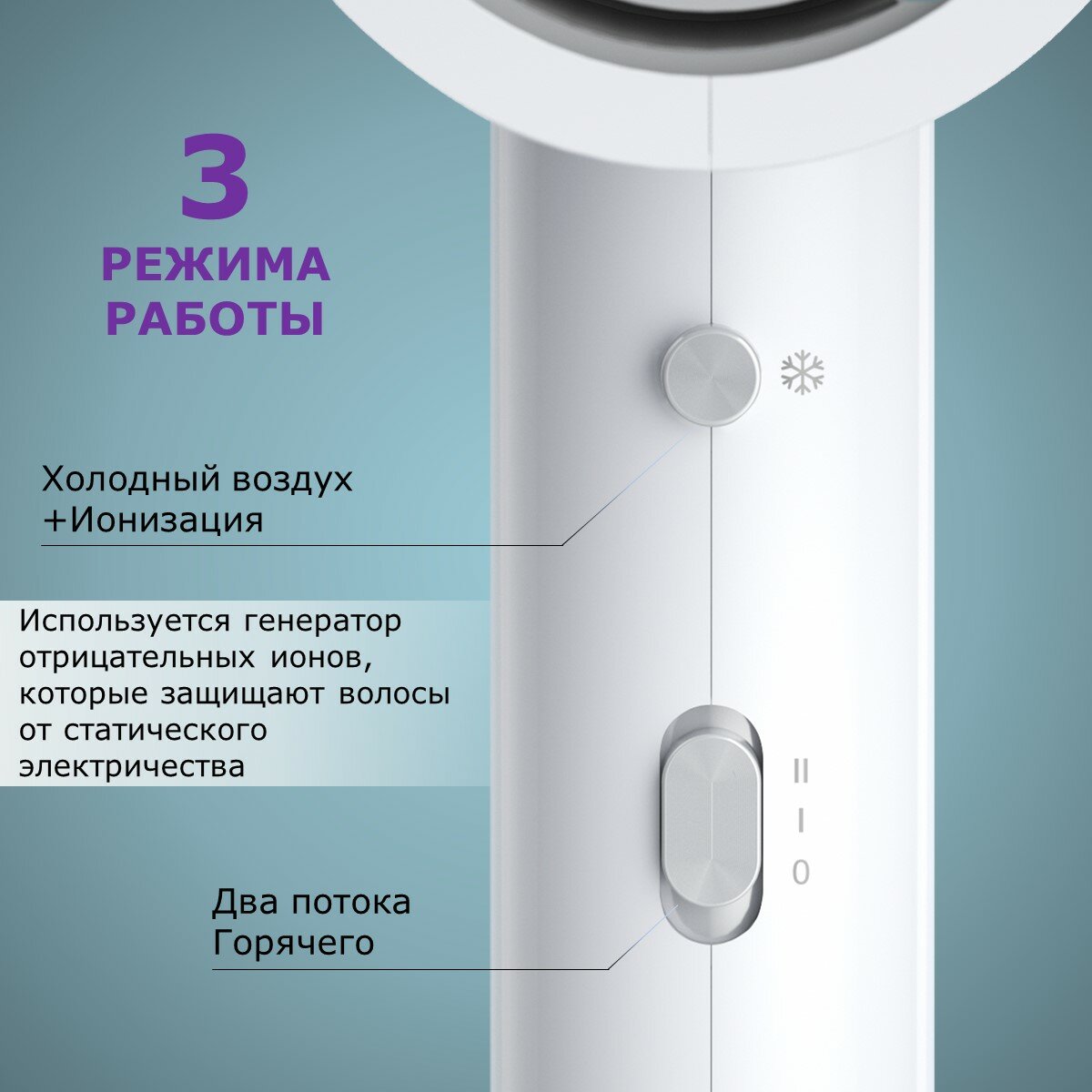 3 режима нагрева (включая холодный воздух).