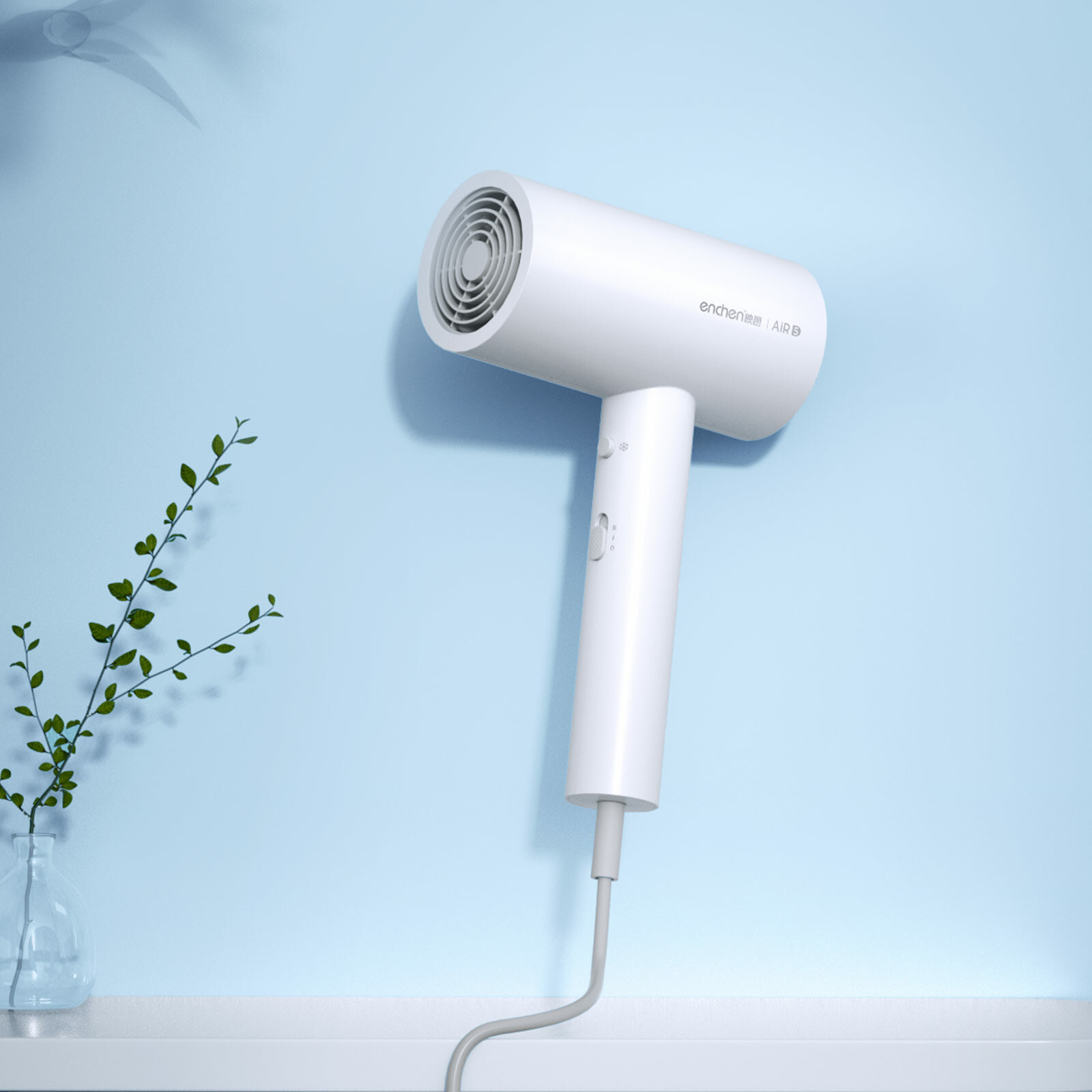 Купить Фен для волос профессиональный Enchen Air 5, белый / Дорожный фен с насадкой для сушки и укладки волос, с ионизацией, 3 температурных режима