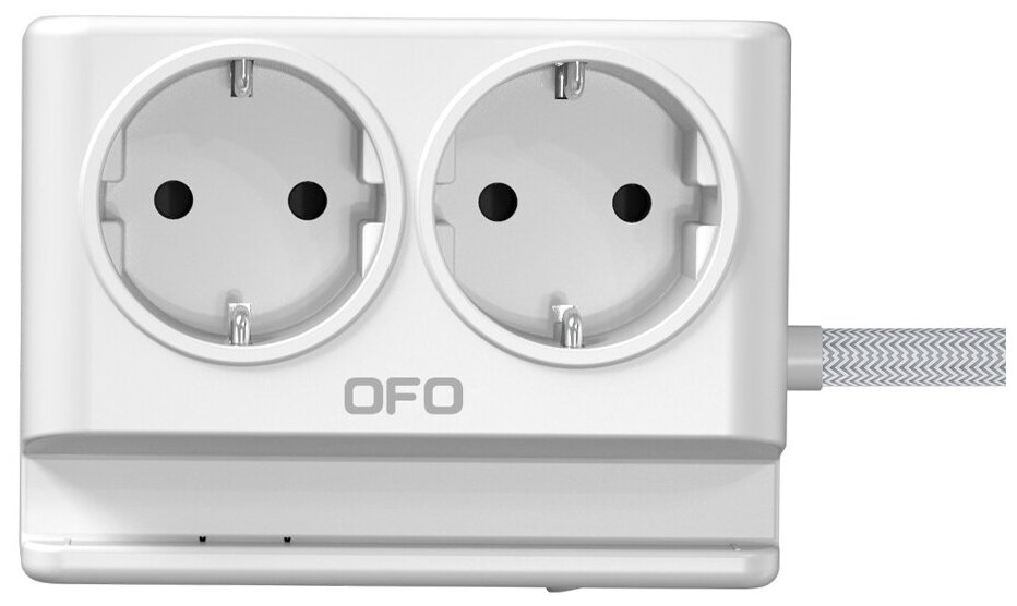 Сетевой фильтр OFOPRO, удлинитель электрический бытовой, 2 гнезда-розетки, с/з, 2 USB, 1 USB TYPE C, 2м, 10А/2500Вт