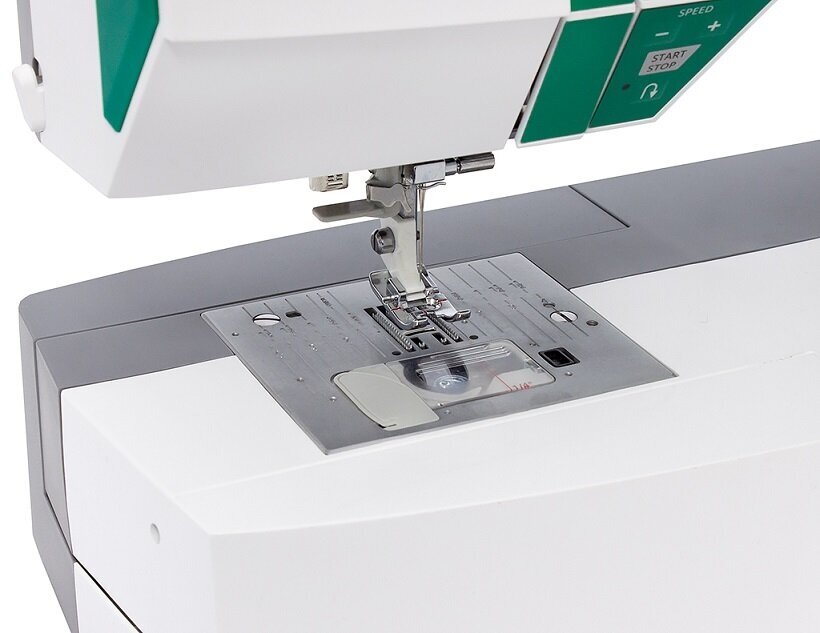 | Дополнительные функции | кнопка реверса, отключение механизма подачи ткани, переключатель положения иглы (верх/низ), регулировка давления лапки на ткань, шитье без педали |
