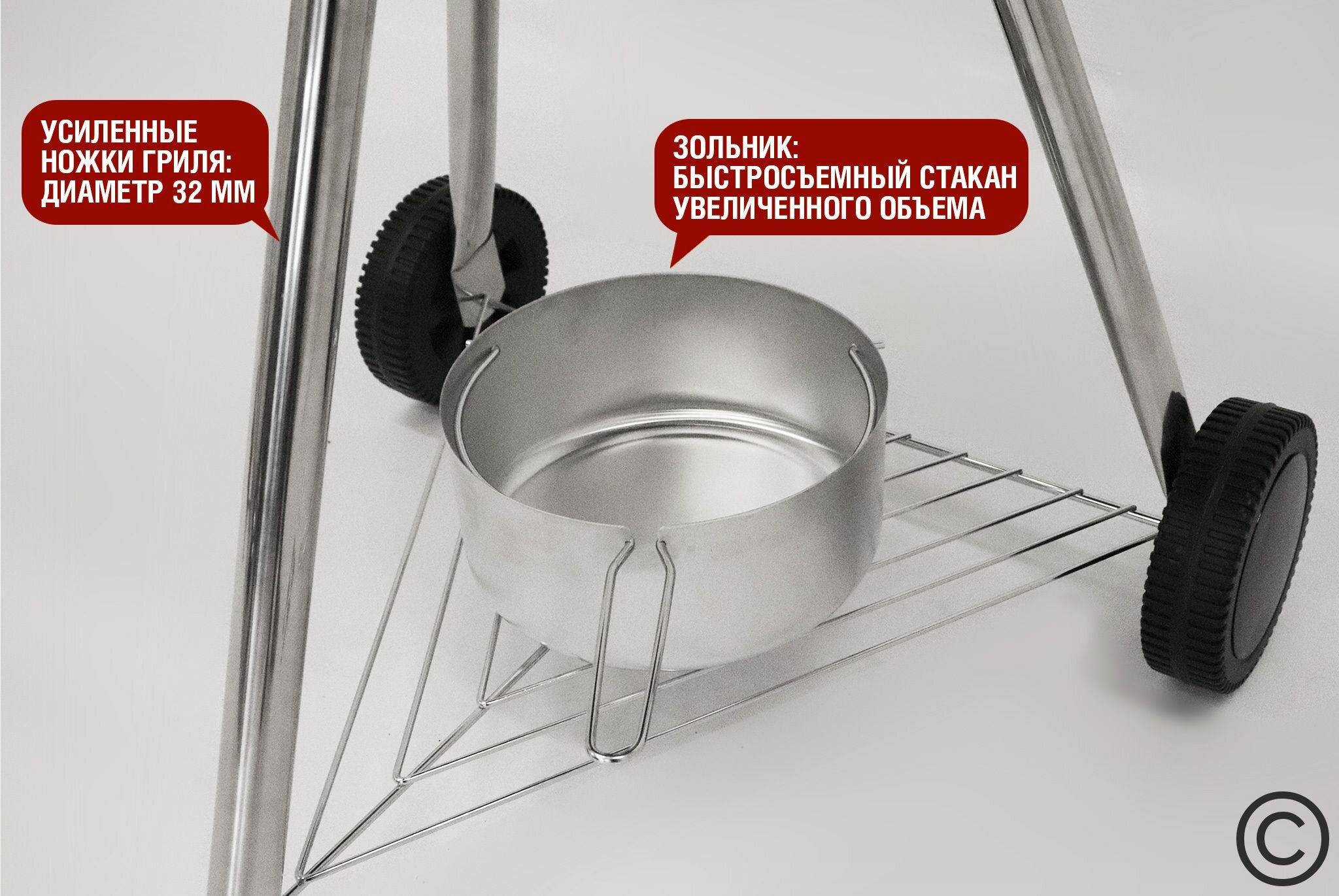| Минусы: | Термометр пришёл с гнутым щупом и не работает, на кромке самой чаши имеются сколы краски. Почти копия гриля известного бренда - не так грамотно продумана система регулировки подачи воздуха снизу и удаления золы. |