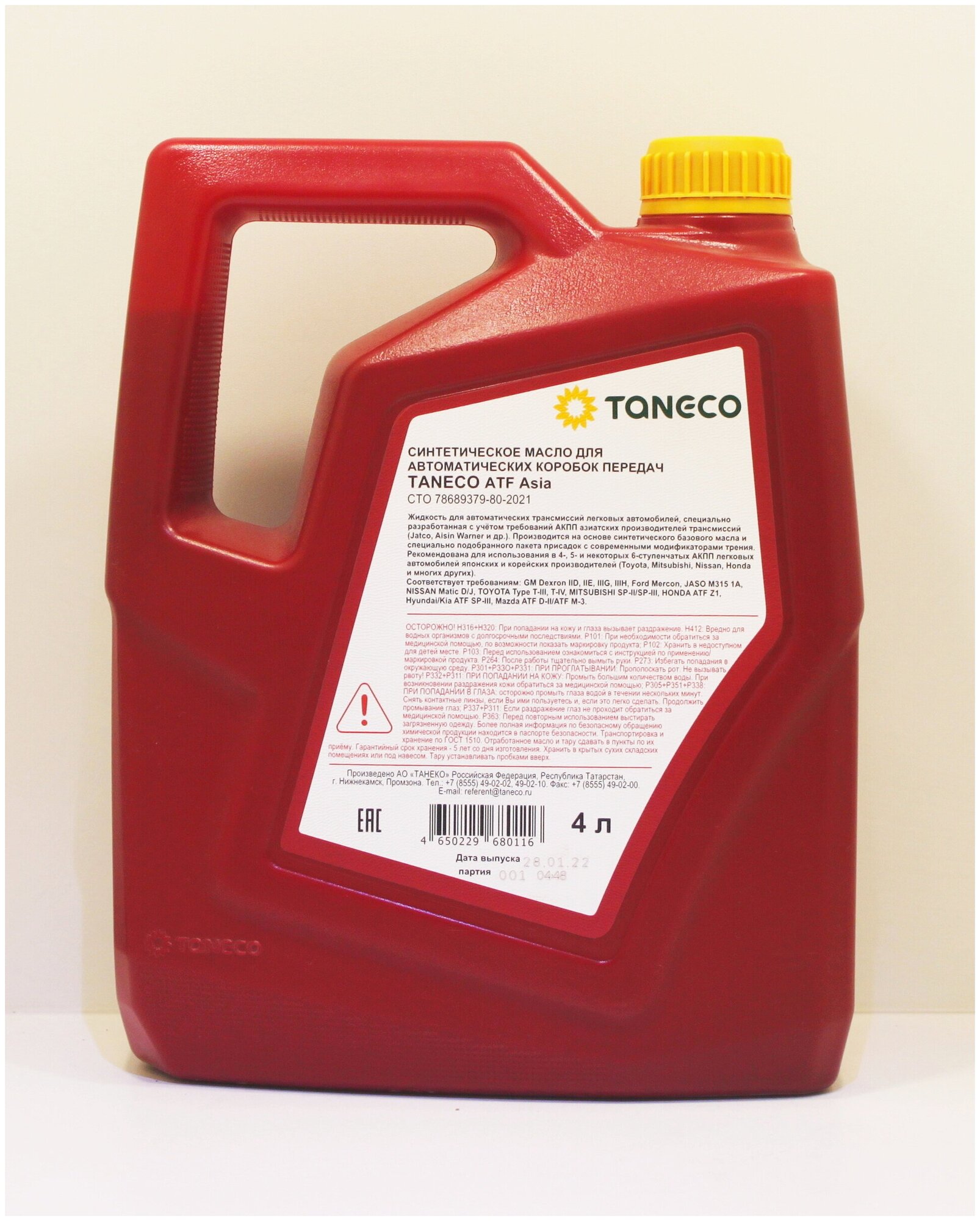 TANECO 4650229680116 татнефть масо трансмиссионное TANECO ATF ASIA 4