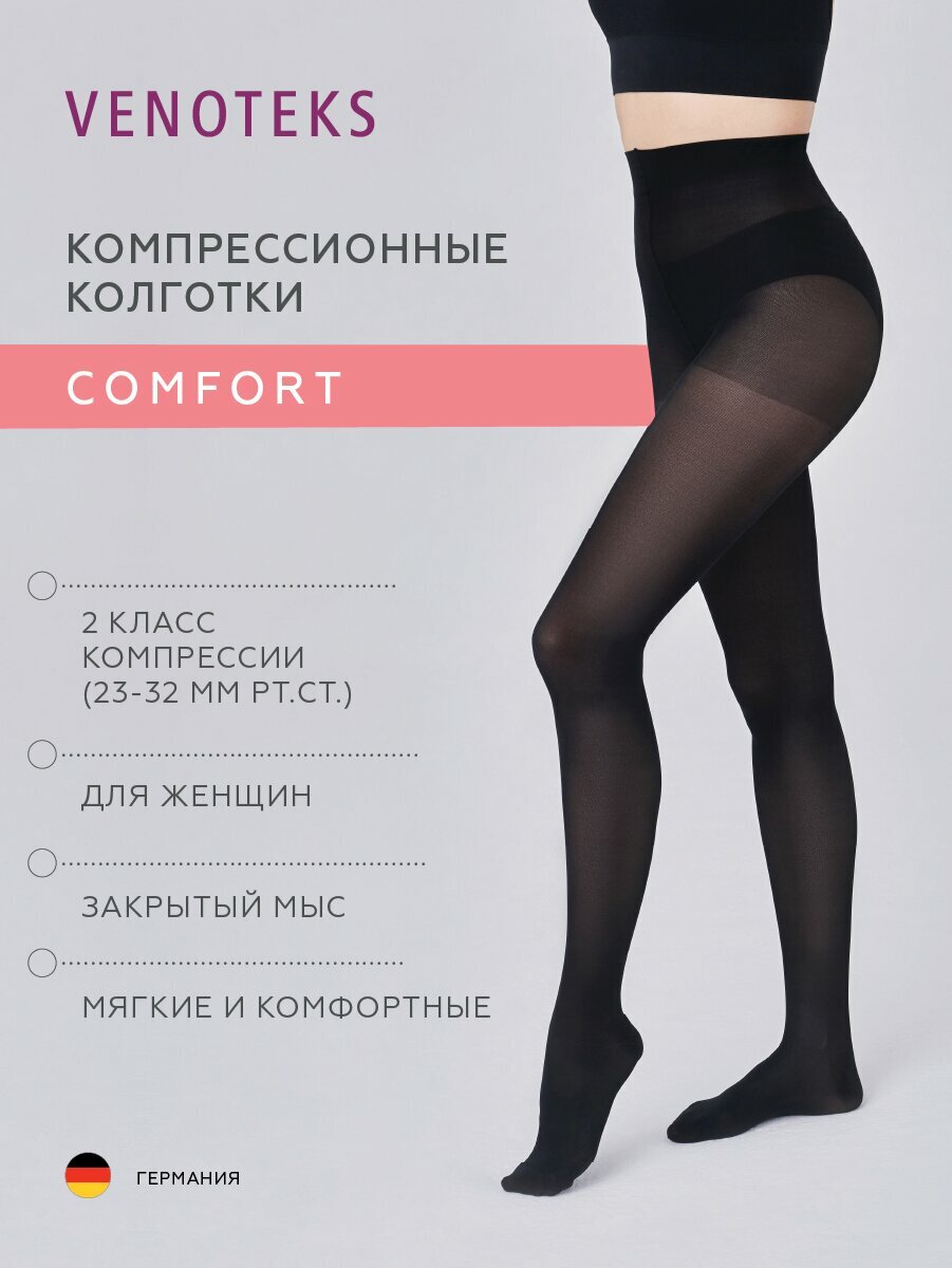 VENOTEKS Х0049885 Компрессионные колготки VENOTEKS COMFORT 2C302 (2 класс, с микрофиброй) (L / Чёрный / Закрытый)