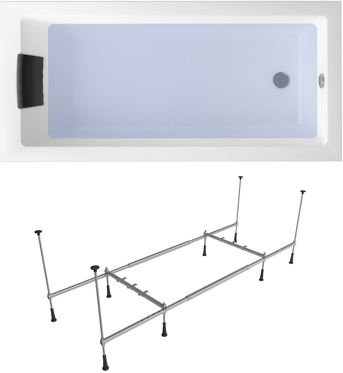 Акриловая ванна 170x80 с каркасом Lavinia Boho Element S1-3709008P в наборе 3 в 1: прямоугольная ванна 170 x 80 см, каркас, подголовник