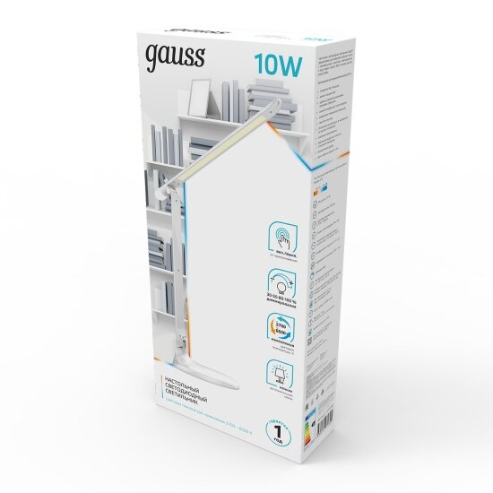 Светильник настольный Gauss модель GTL204 10W 550lm 2700-6500K 170-265V белый диммируемый + ночник LED 1/10/30