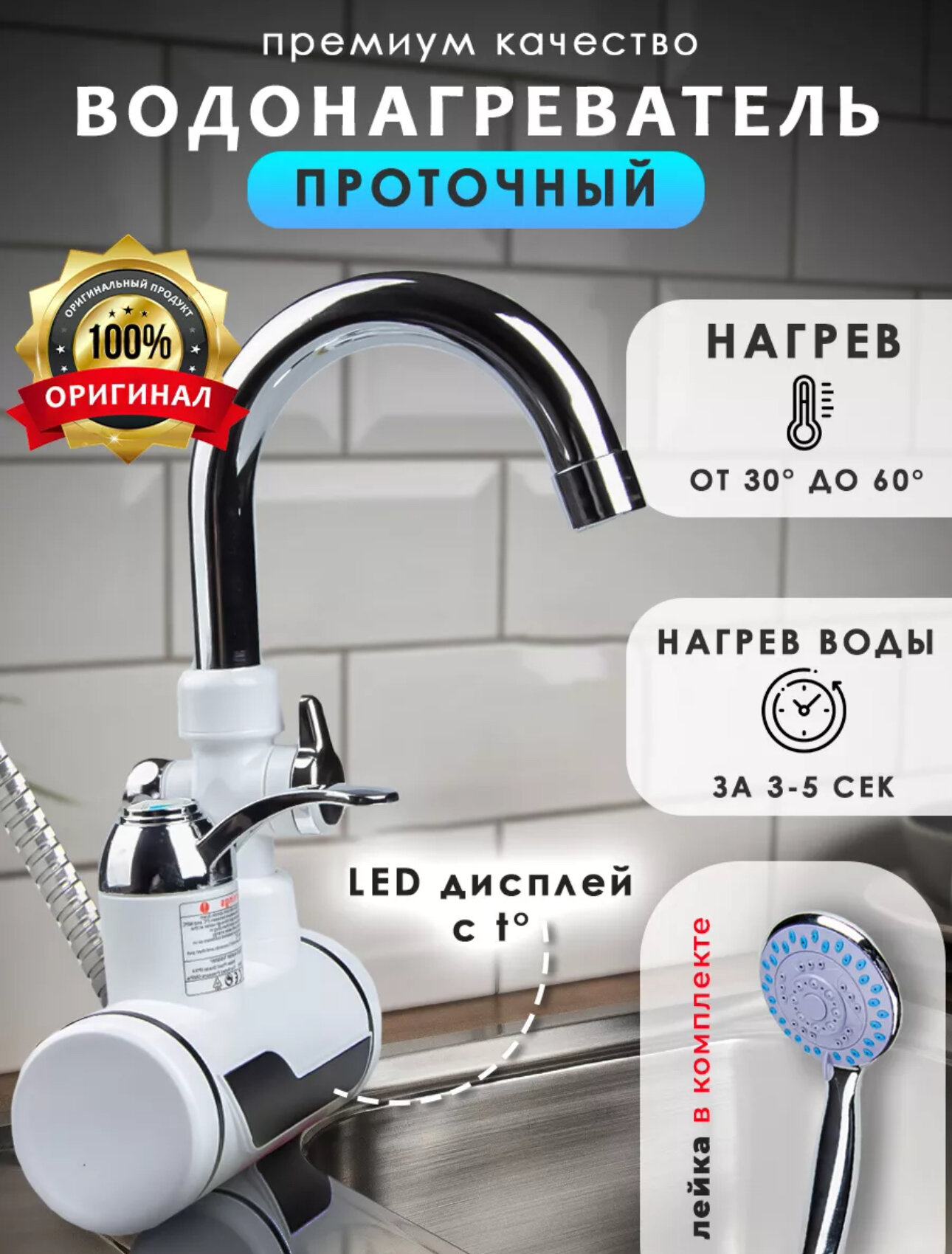 | Особенности | дисплей / душевая лейка в комплекте / кран в комплекте / подключение к стандартной розетке |