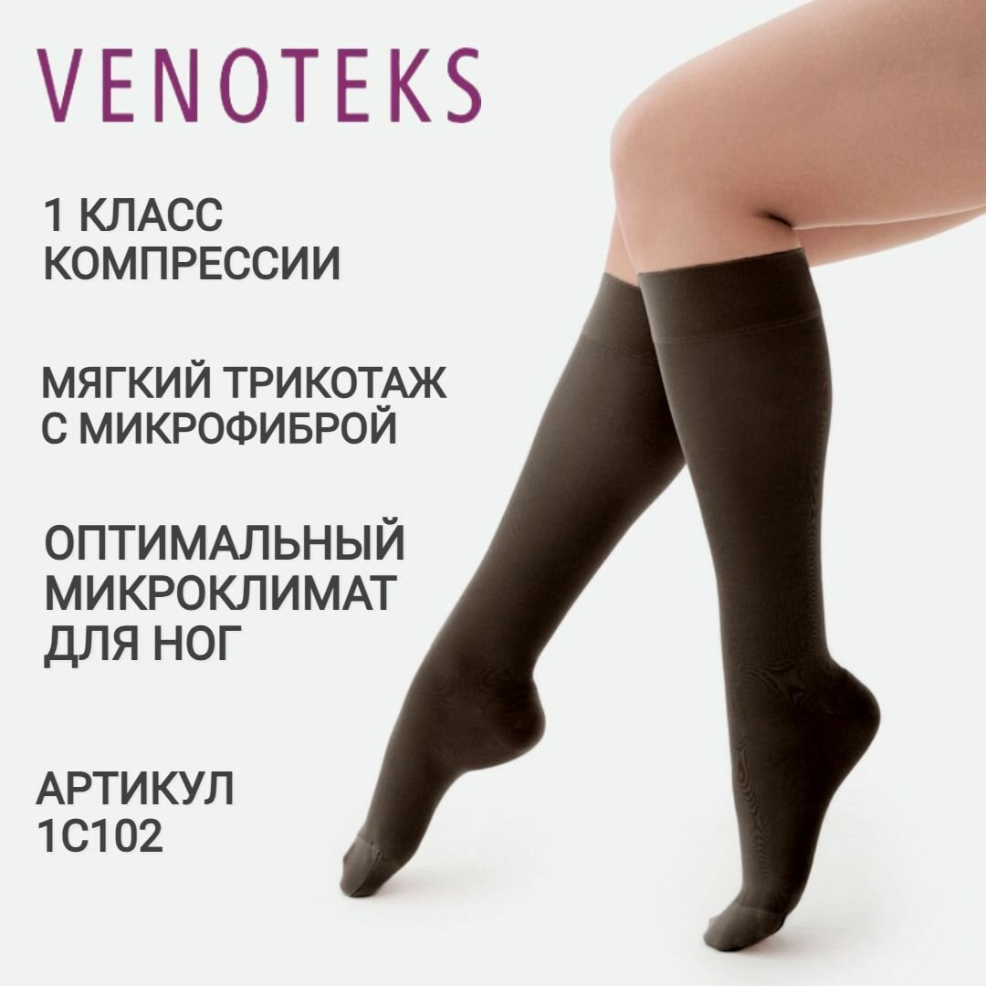 Компрессионные гольфы VENOTEKS Comfort 1C102 с микрофиброй 1 класс компрессии, противоварикозные, Размер L, Черный