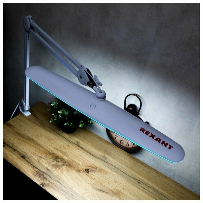 Лампа настольная бестеневая REXANT, струбцина, «Blue Stream», 117 SMD LED, диммер (4 уровня), белая