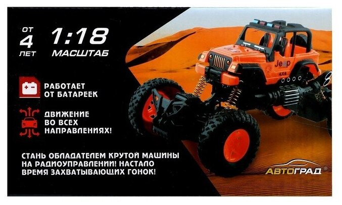 Джип радиоуправляемый Автоград "Краулер", 1:18, работает от батареек, цвет оранжевый (JC20-2A)