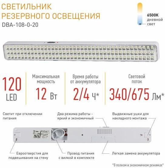 Купить Аварийный светильник DBA-108-0-20 непостоянный 120LED 4ч IP20, ЭРА Б0051842 (1 шт.)