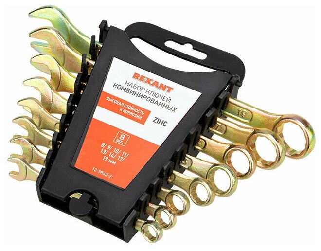 Набор комбинированных ключей REXANT 8-19 мм, 8 шт желтый цинк 12-5842-2