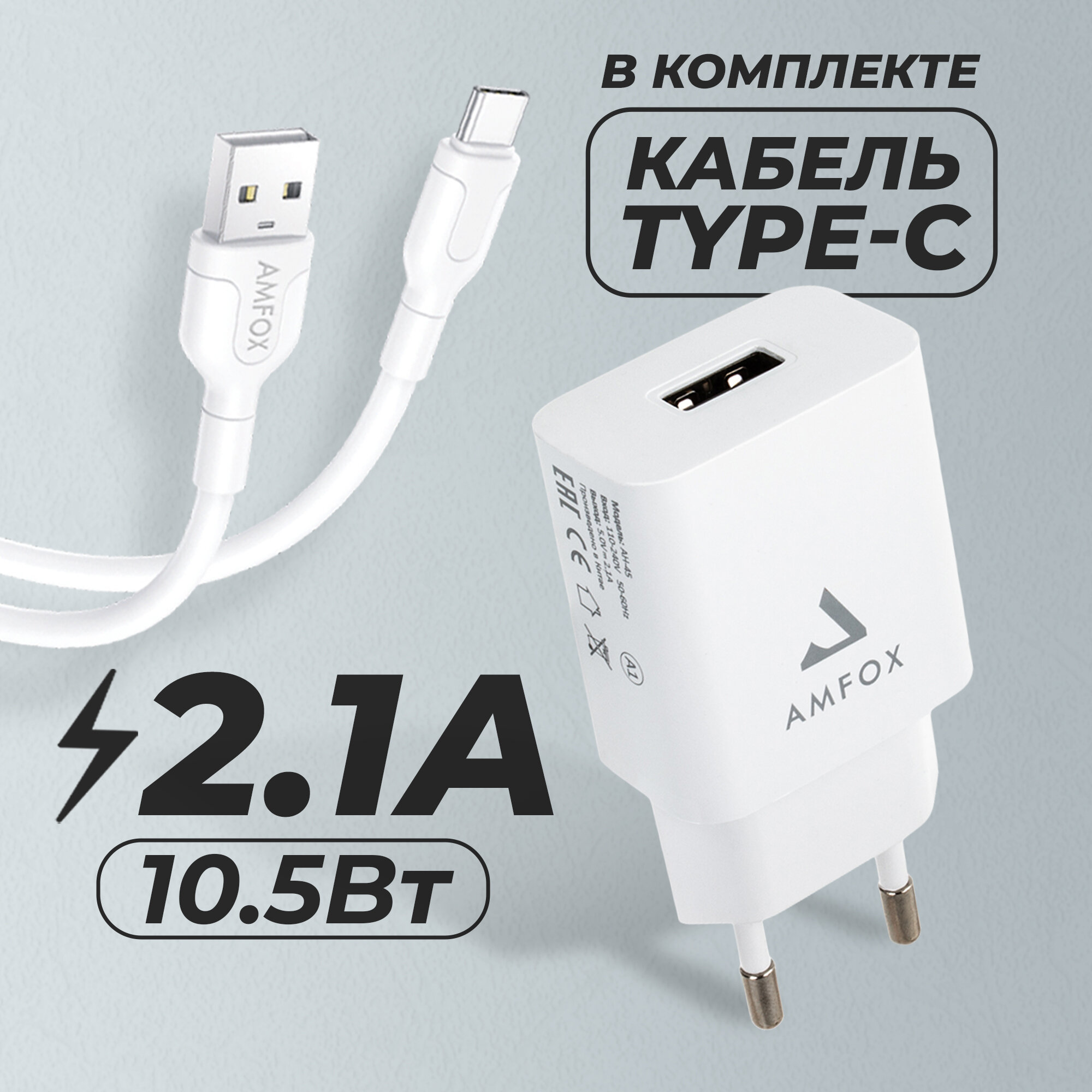 СЗУ AMFOX AH-45, 2.1A, 10,5Вт, USBx1, блочок + кабель Type-C, белое