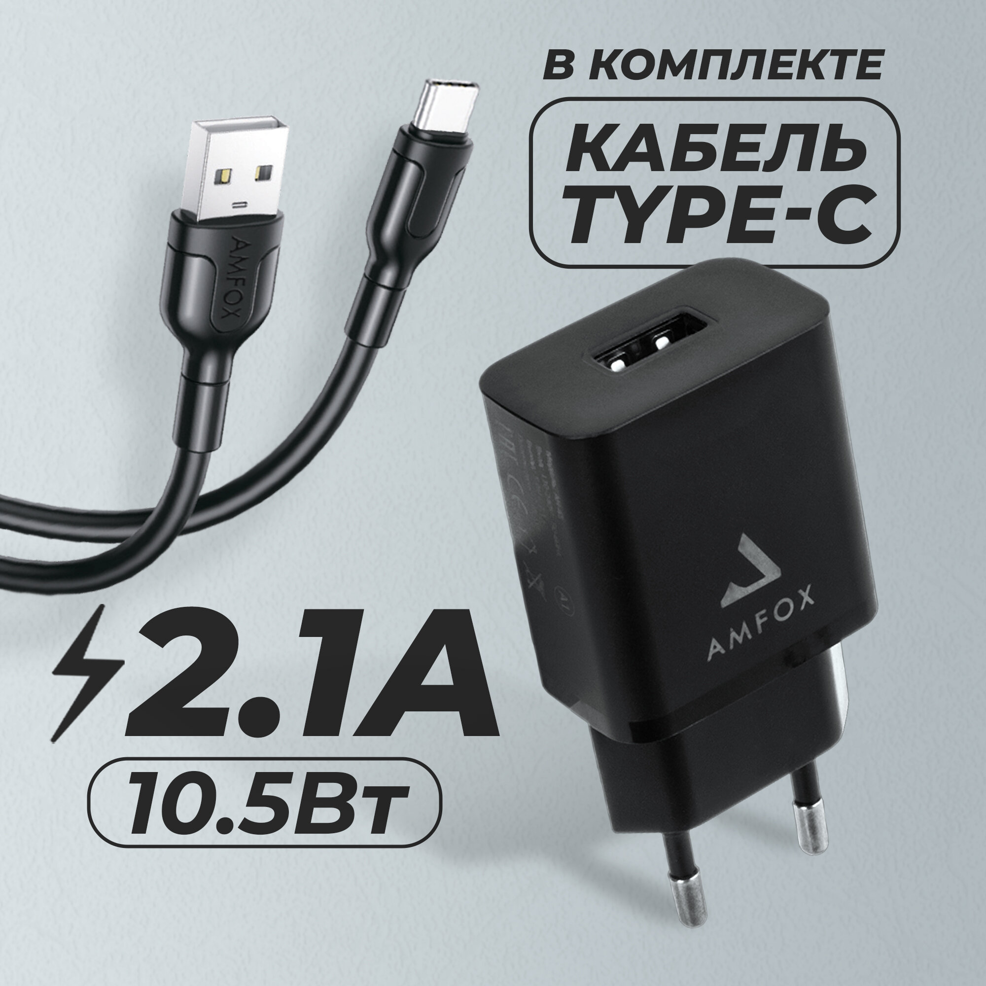 СЗУ AMFOX AH-45, 2.1A, 10,5Вт, USBx1, блочок + кабель Type-C, черное