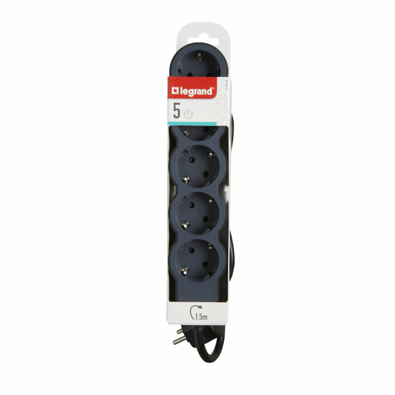 Удлинитель серии Стандарт 5 x 2К+З с кабелем 1,5 м., цвет: черный LEGRAND 694556 (1 шт.)