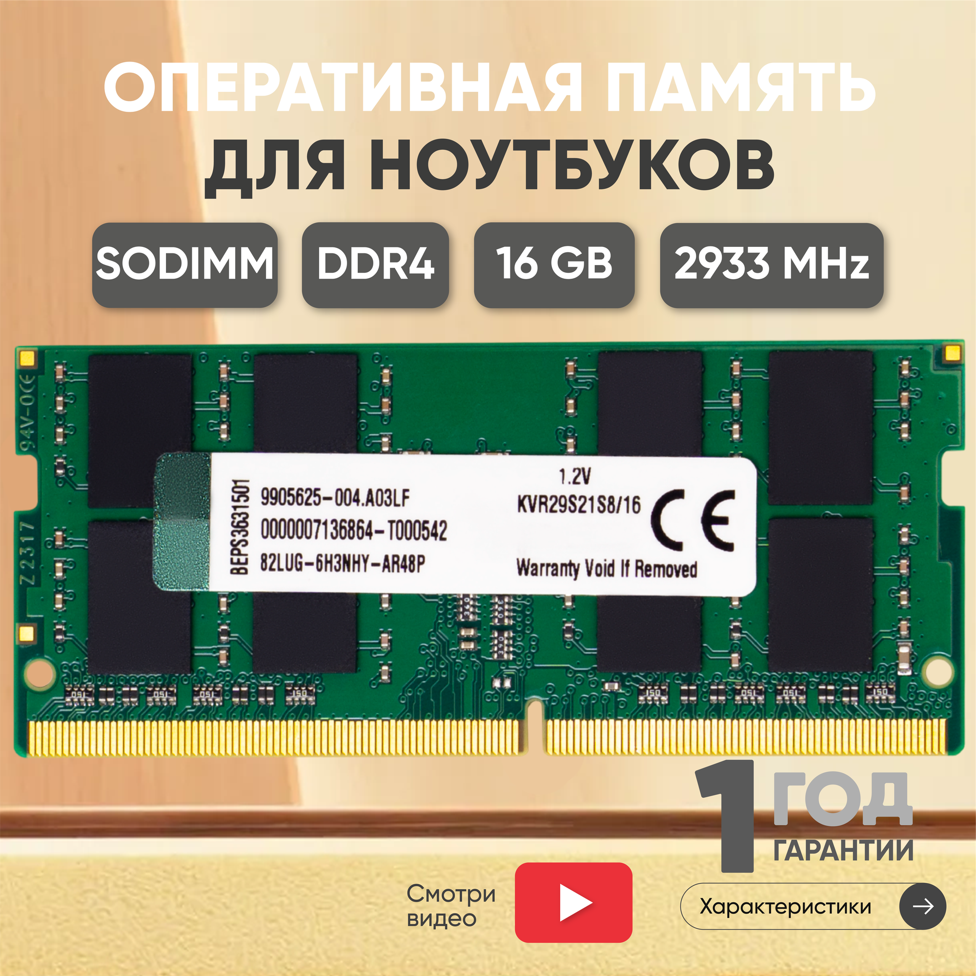 Модуль памяти Kingston SODIMM DDR4, 16ГБ, 2933МГц, PC4-23400 интересное: