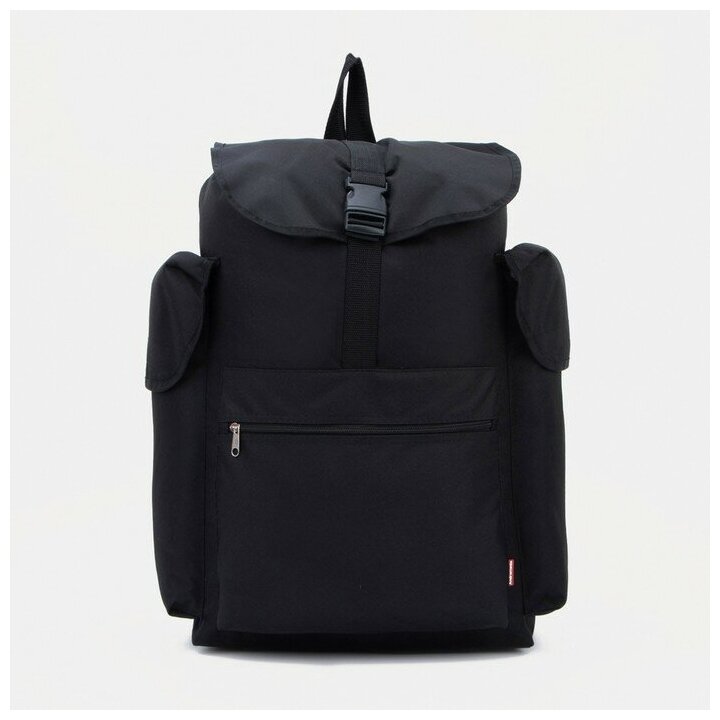 Рюкзак туристический на шнурке, 30 л, 3 наружных кармана, цвет чёрный