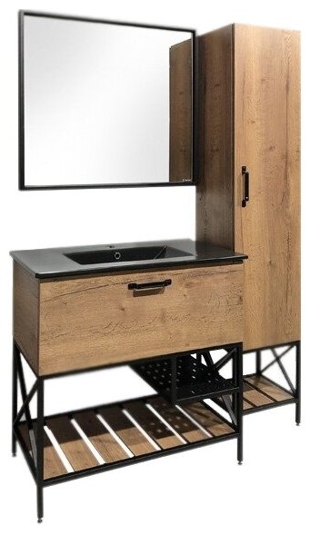 Купить Тумба-умывальник "Бредфорд-90" дуб темный с рак. COMFORTY 90E черная матовая