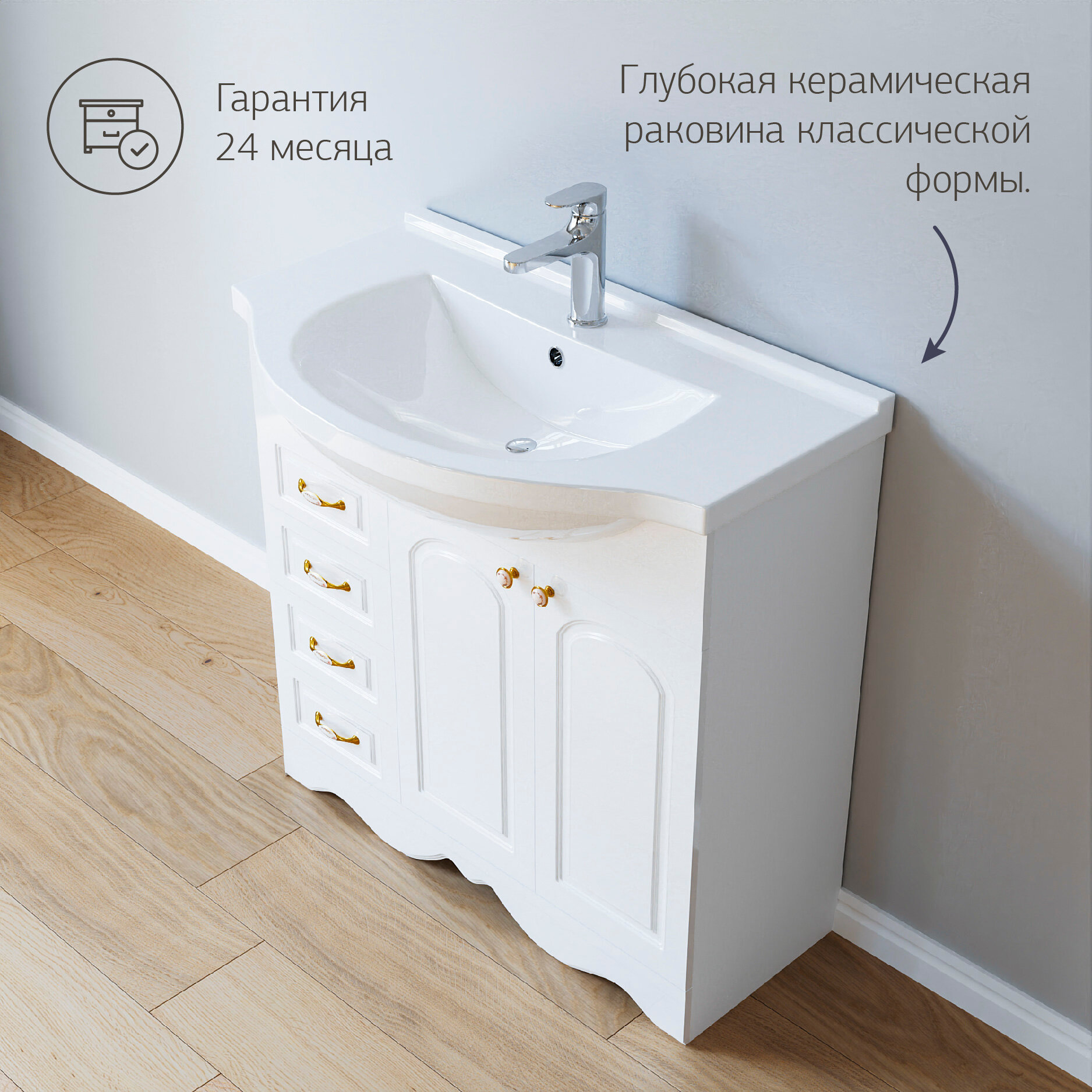 Тумба с раковиной для ванной Анна 90 Белая