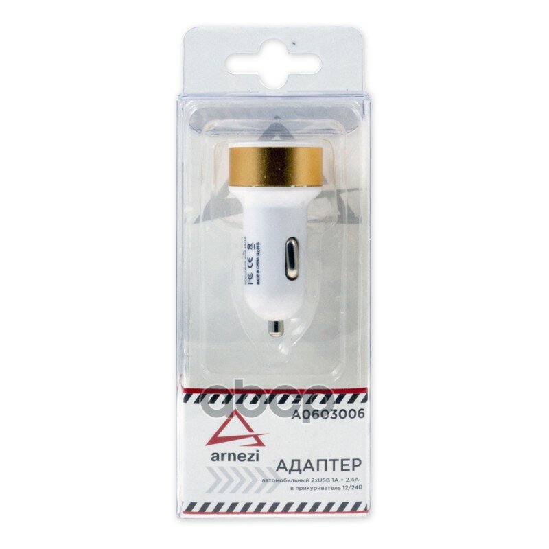 Адаптер Автомобильный 2Xusb 5В 1А+2,4А 12В/24В Gold Arnezi A0603006 ARNEZI арт. A0603006