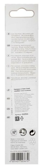 Карандаш чернографитный FABER-CASTELL, 1 шт., "1221", H, корпус черный, 112511