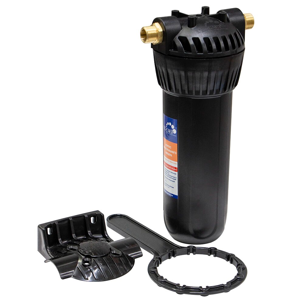 Корпус магистральный фильтра для горячей воды 10"SL Ø1/2" чёрный, пластиковое крепление ГЕЙЗЕР (1/8)