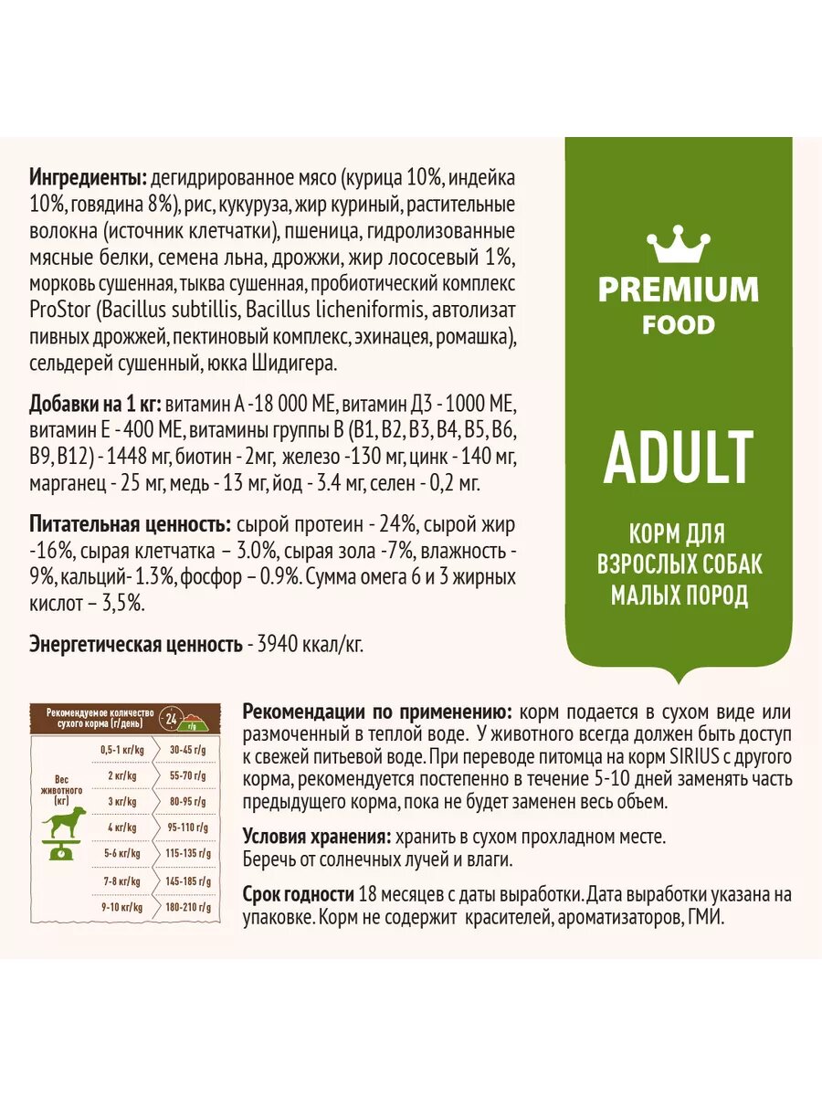 СохранитьКорм для взрослых собак малых пород, говядина ТМ SIRIUS 2 кг интересное: