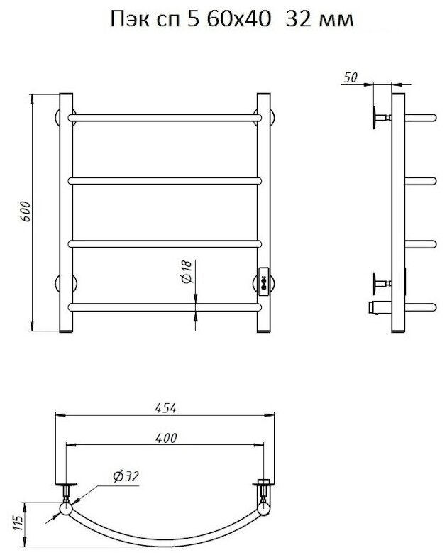 Купить Полотенцесушитель электрический Тругор Пэк сп 5 60х40 32 мм