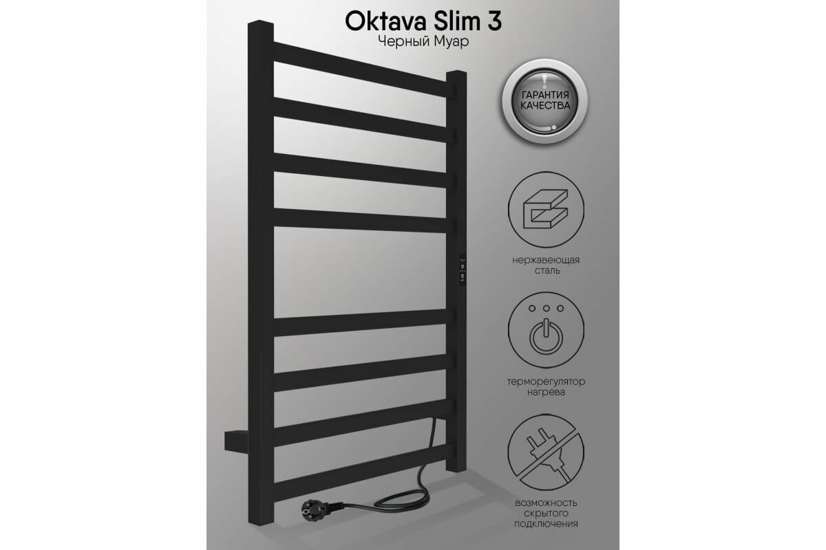 Полотенцесушитель Oktava Slim 3 электрический 80/50 таймер, скрытый монтаж, универсальное подключение, Черный муар INDIGO
