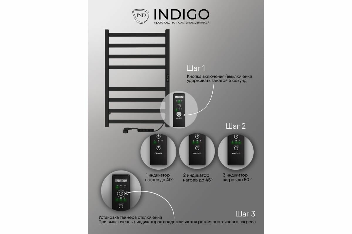 Indigo Электрический полотенцесушитель INDIGO LСLOKS3E80-50BRRt Oktava Slim 3 без полочки, черный