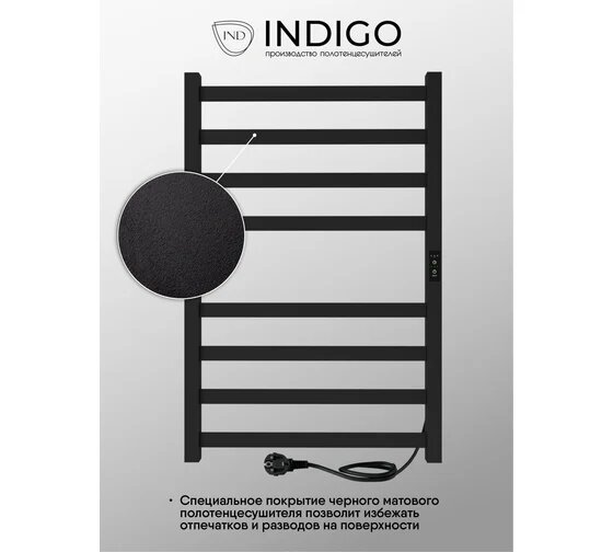 Полотенцесушитель Indigo Oktava Slim 3 б/п 800х500 (таймер,скр.монт) черный муар LСLOKS3E80-50BRRt