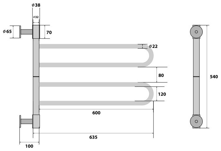 Полотенцесушитель электрический ENERGY U CHROME G2 36 Вт (ВхШхГ 540x635x100) поворотный интересное: