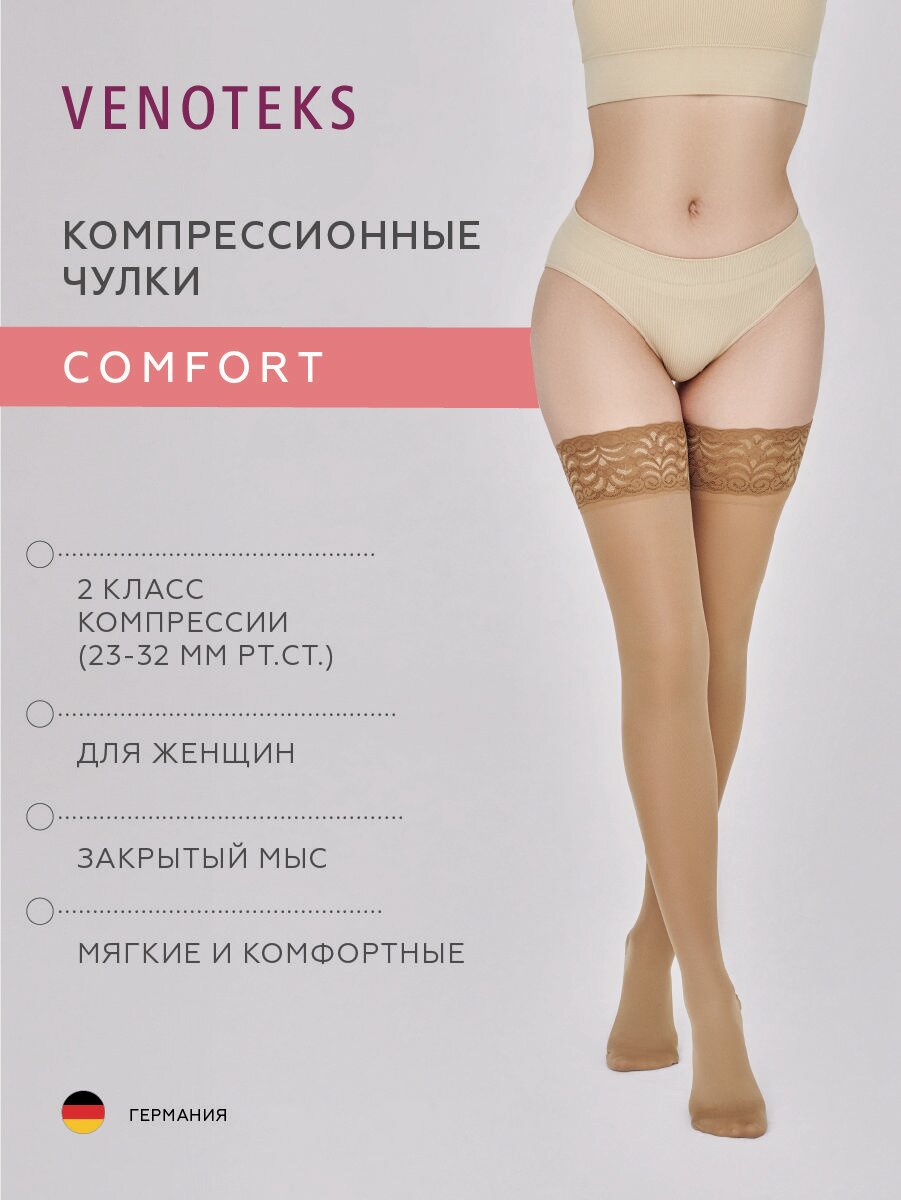Чулки Venoteks Comfort 2C202 противоварикозные, компрессионные 2 класс (Цвет:Бежевый, Размер:XL)