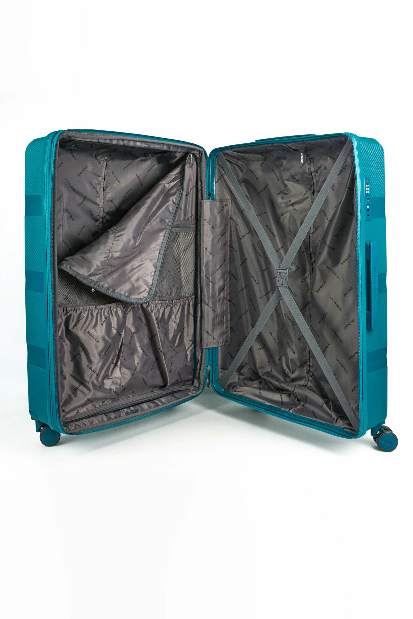 Чемодан Sweetbags средний из полипропилена с расширением на 4-х колесах с TSA замком (3 гориз. полосы) бирюзовый M+