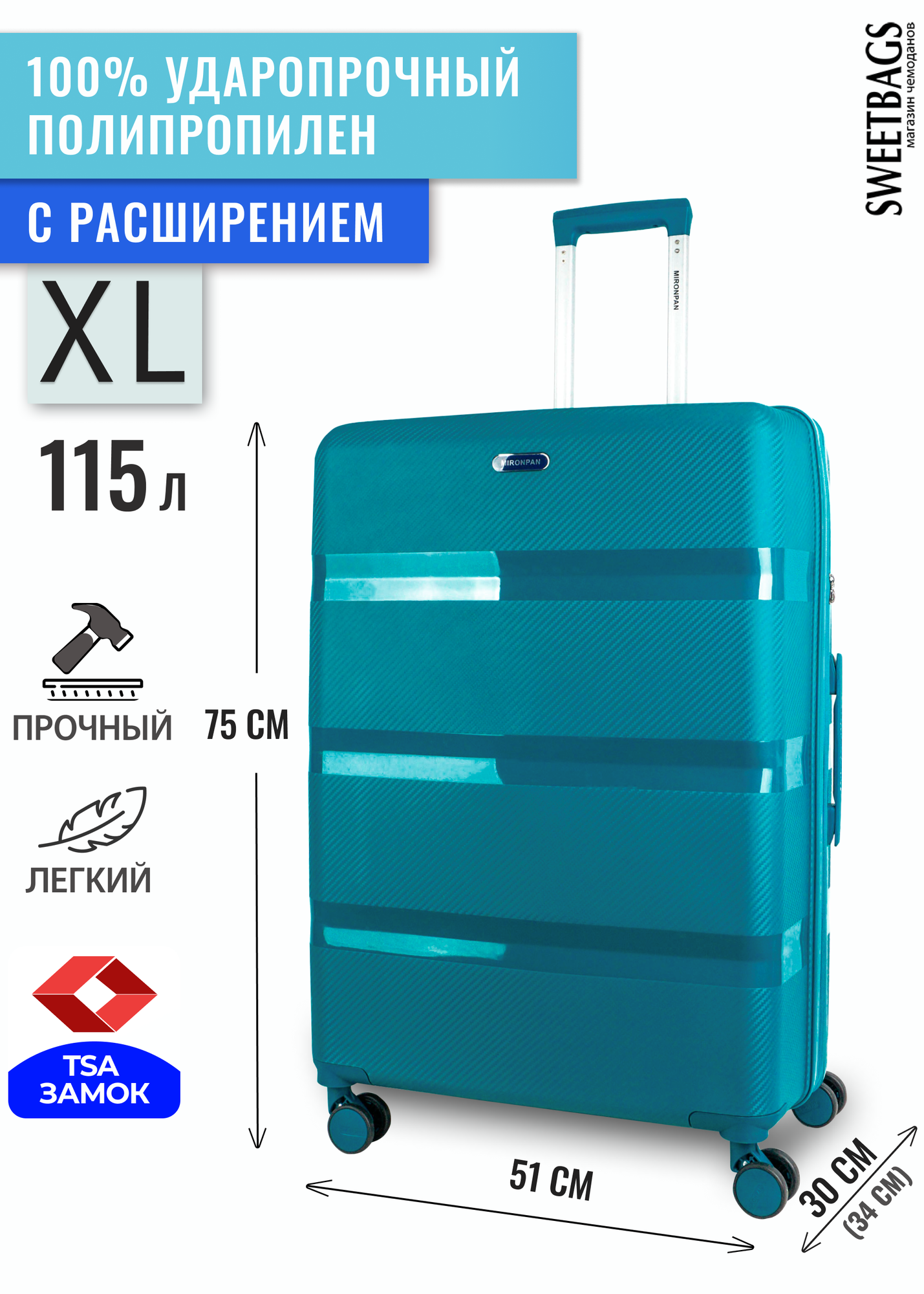 Купить Чемодан Sweetbags большой из полипропилена с расширением на 4-х колесах с TSA замком (3 гориз. полосы) бирюзовый XL