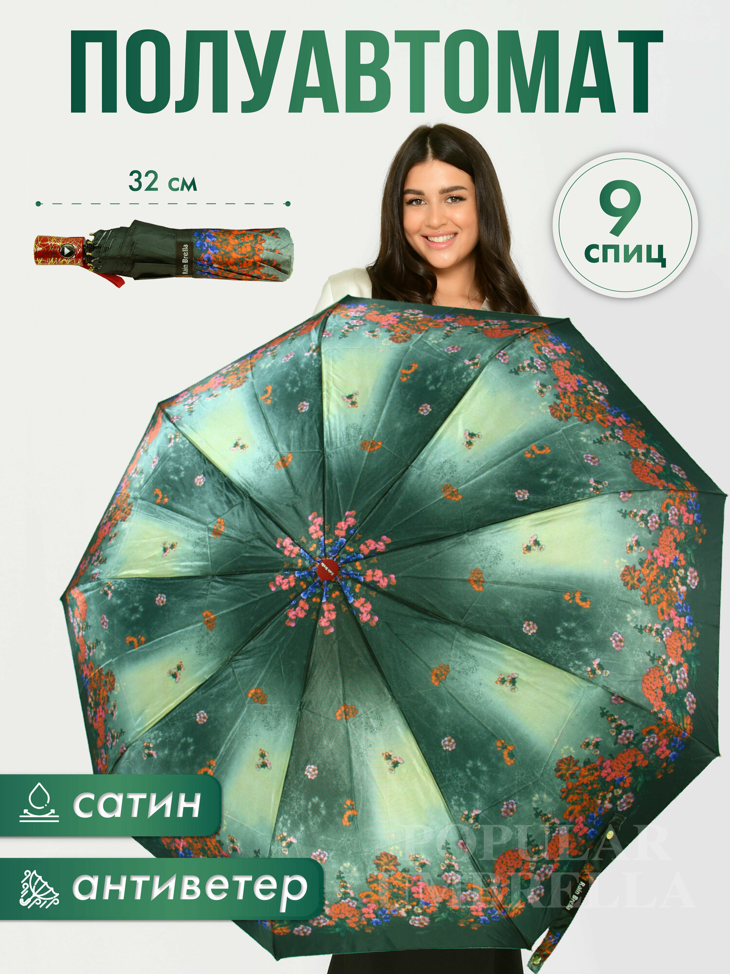 Зонт женский полуавтомат, зонтик взрослый складной антиветер 111N, зеленый