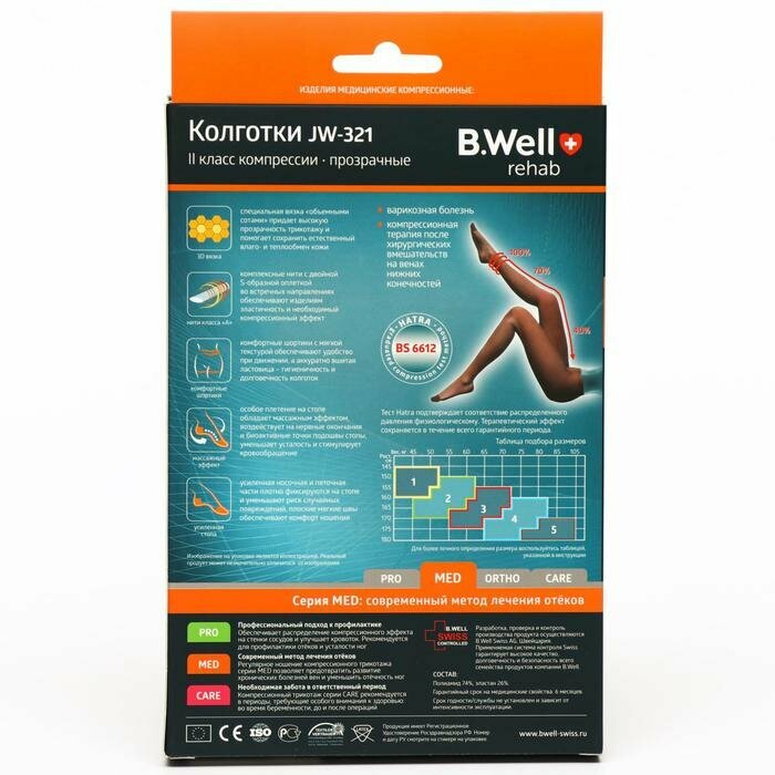 СохранитьКолготки компрессионные B.Well, лечебные, прозрачные, II класс JW-321 3, Natural интересное: